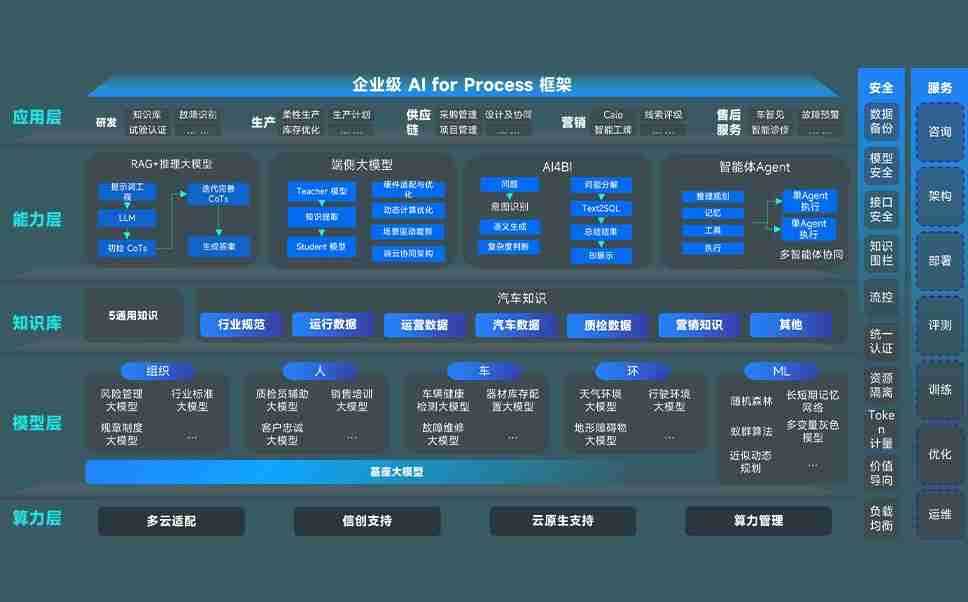 z6尊龙问学智车解决方案是一套基于AI技术的汽车行业智能化系统,,,,覆盖从底层算力到顶层AI应用的全栈方案。。方案由算力层、、、、模型层和应用层组成:算力层,,方案支持多种一体机配置,,,具备云端灵活部署、、多云适配以及动态优化计算资源的能力;模型层,,z6尊龙问学平台版提供了企业级AI应用一站式构建与管理平台,,,支持基于后训练强化技术的汽车企业专属模型的训练、、、、评测和运营;应用层,,,,z6尊龙问学DeepSeek版提供包括超级员工、、、、智能招采、、、、智能营销、、、智能客服、、、、AI for BI等一系列解决方案,,可助力汽车行业实现数字化转型,,,让管理更智能、、、、响应更敏捷。。。。